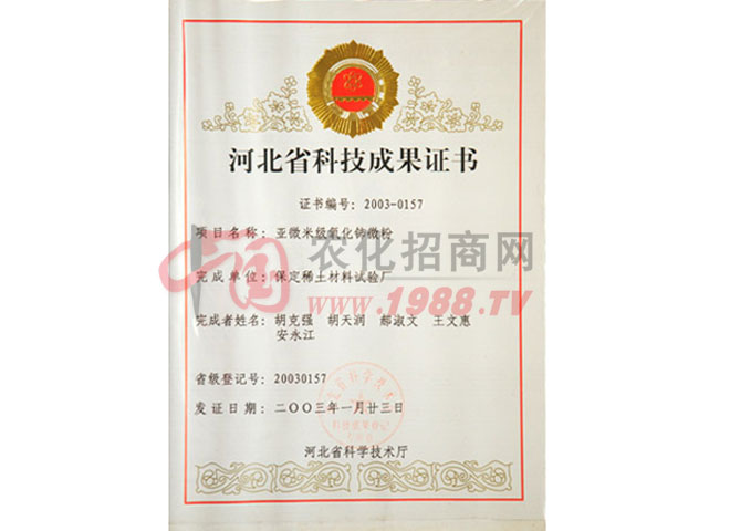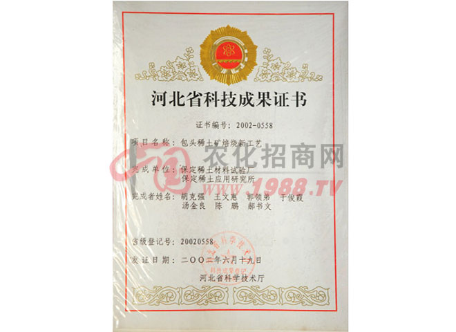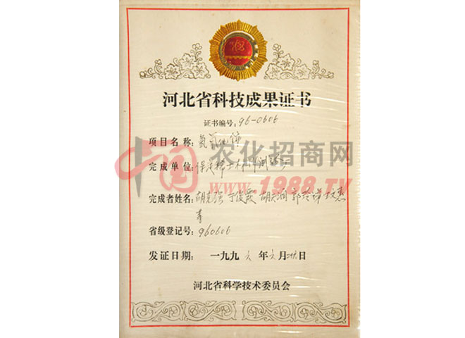 證書名稱:河北省科技成果證書 發(fā)證機(jī)構(gòu):河北省科學(xué)技術(shù)廳