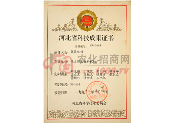 證書名稱:河北省科技成果證書 發(fā)證機(jī)構(gòu):河北省科學(xué)技術(shù)委員會(huì)