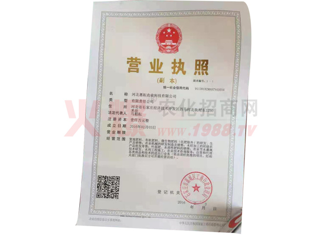 為完善公司產(chǎn)品質(zhì)量和供應需求,公司現(xiàn)與河北志誠、滄州志誠和衡水歐亞等多個國家定點農(nóng)藥生產(chǎn)企業(yè)聯(lián)合建立了多條除草劑生產(chǎn)線,自主申報20多個產(chǎn)品登記證書,并已開始著手建立自己的農(nóng)藥定點生產(chǎn)企業(yè),將來本公司將為客戶提供更加可靠產(chǎn)品、優(yōu)質(zhì)的服務品和更加完善的配套應用技術(shù)。