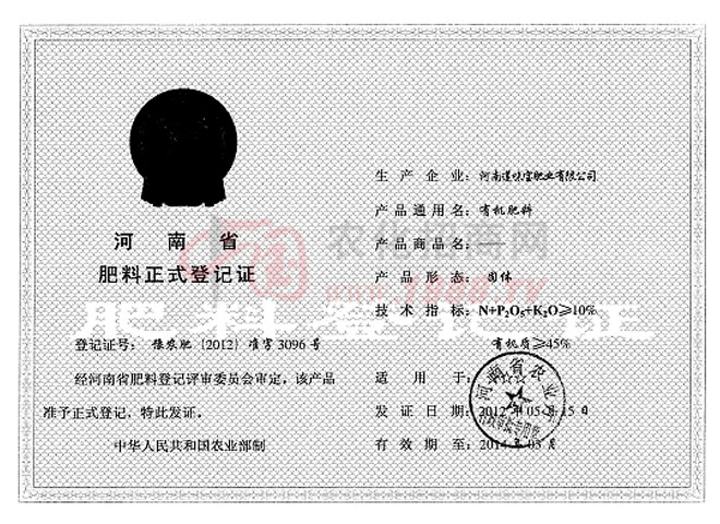 • 肥料正式登記證肥料正式登記證