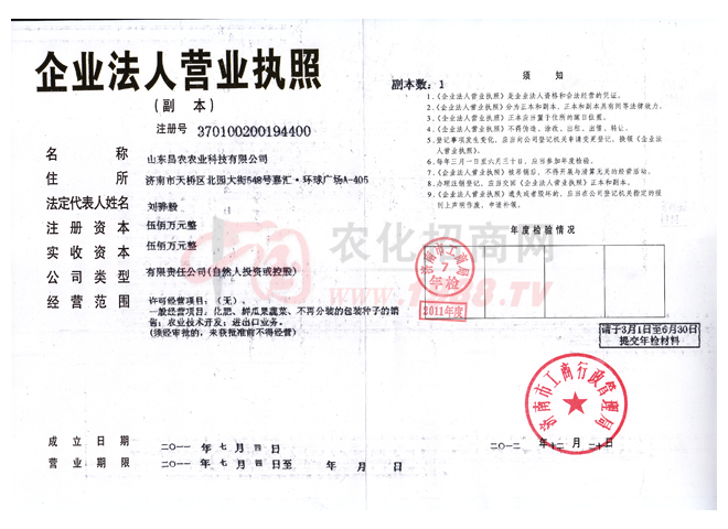 山東昌農(nóng)農(nóng)業(yè)科技有限公司成立于2011年7月1號,位于濟南市天橋區(qū)北園大街548號嘉匯?環(huán)球廣場。是一家以肥料銷售、農(nóng)業(yè)項目開發(fā)的綜合性銷售服務(wù)企業(yè),企業(yè)擁有高級農(nóng)藝師、農(nóng)藝師、技術(shù)員組成的專家團隊和數(shù)名精英業(yè)務(wù)員。并且我公司與山東省農(nóng)科院等科研單位長期合作,并給我們提供先進高端技術(shù),我們公司代理銷售各種高端技術(shù)及國家發(fā)明專利的優(yōu)質(zhì)產(chǎn)品。