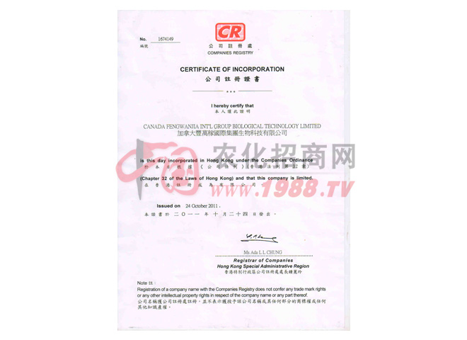 • 公司注冊證書公司注冊證書