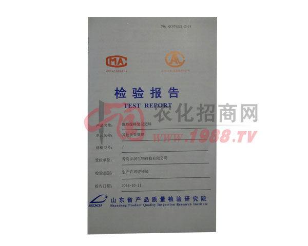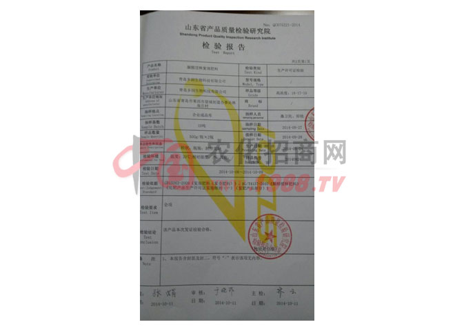證書名稱:檢驗報告 發(fā)證機構(gòu):山東省產(chǎn)品質(zhì)量檢驗研究院